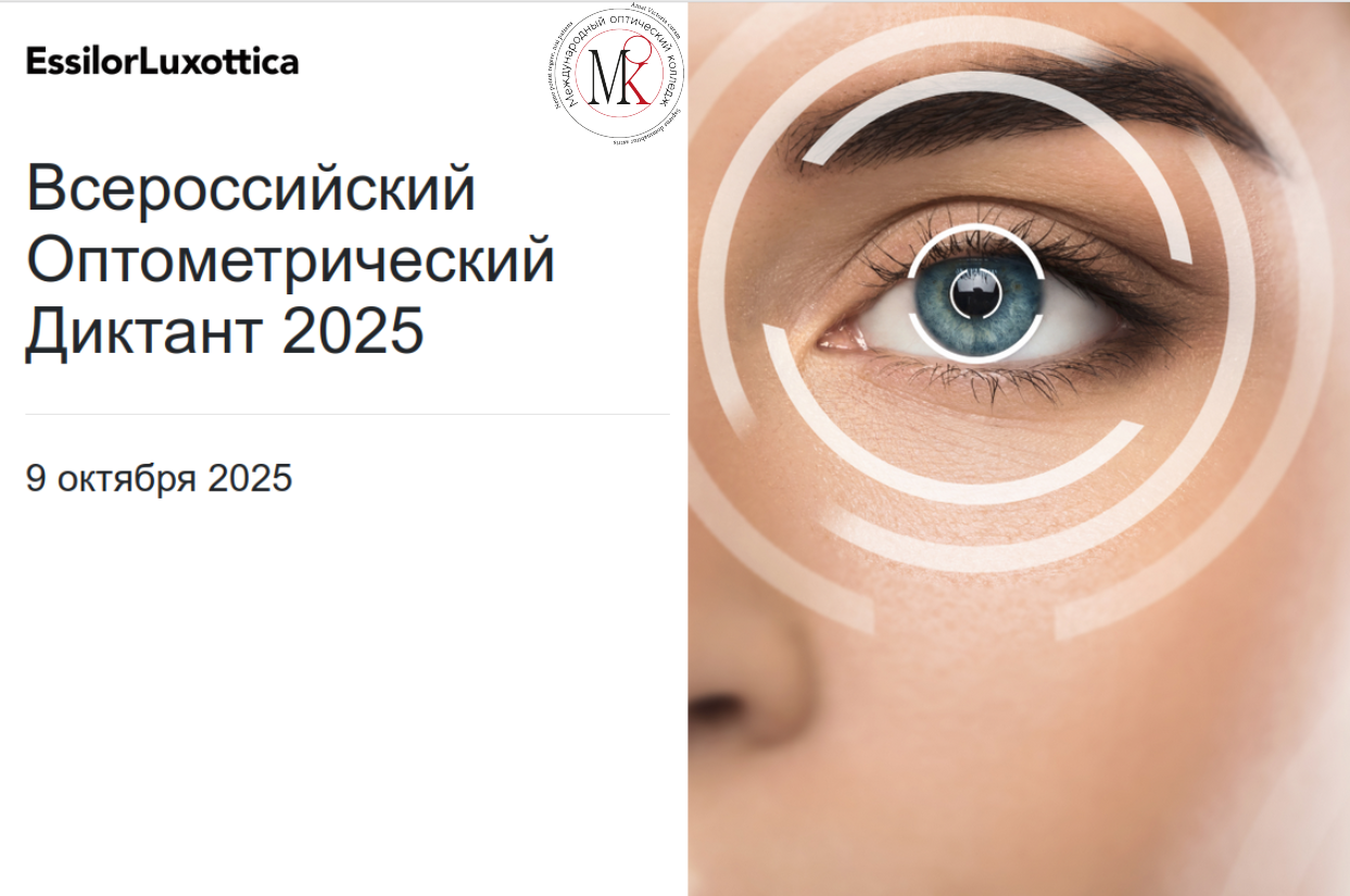 Компания Essilor совместно с Международным оптическим колледжем приглашают принять участие во Всероссийском Оптометрическом Диктанте 2025!